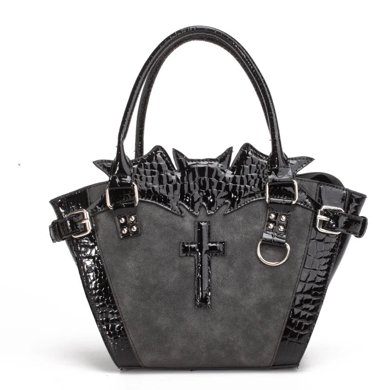 Gothic Punk Cross Bat Large Shoulder Crossbody Bag