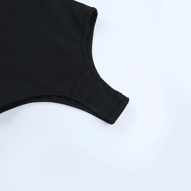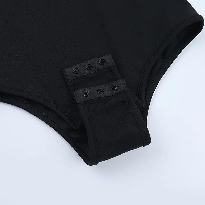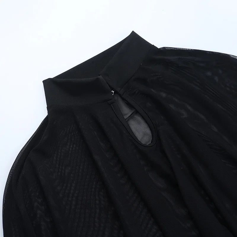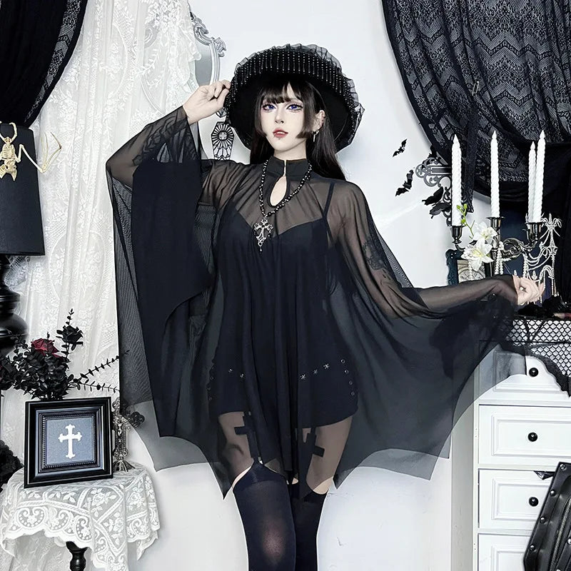 Gothic Alt Goth Black Spaghetti Strap Bodysuit Top + Sheer Cape Set