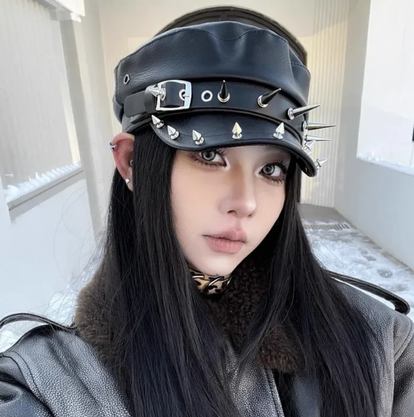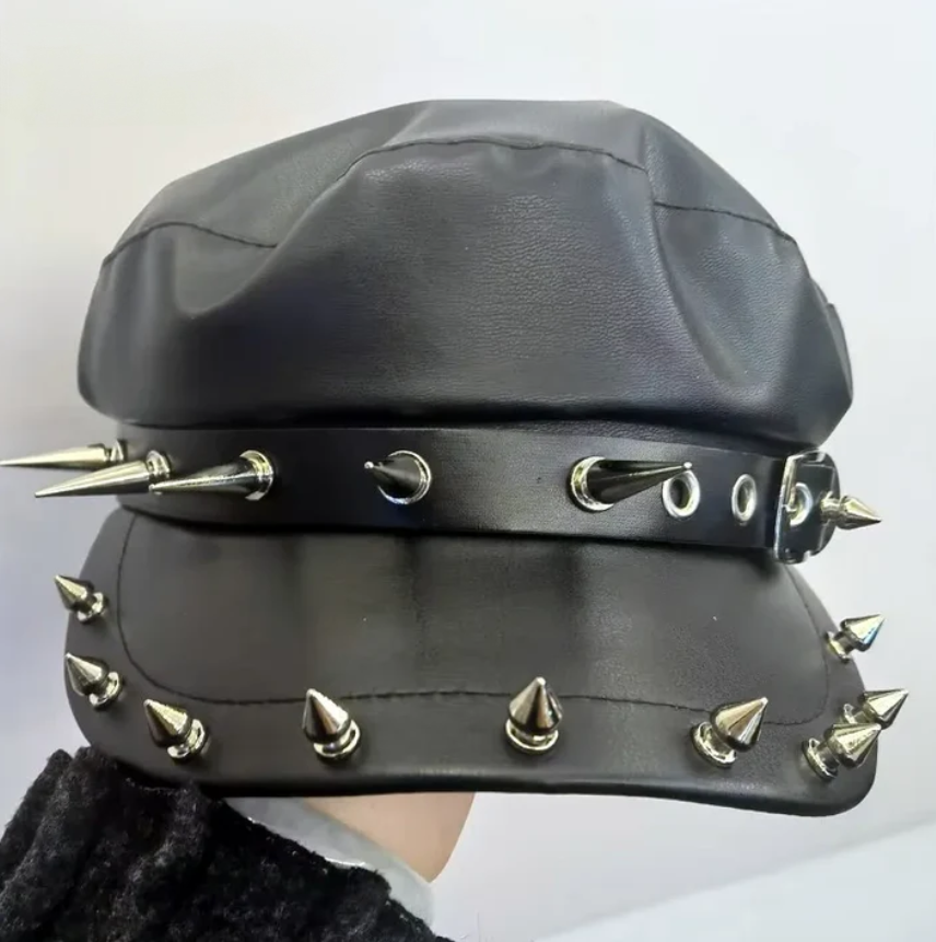 Gothic Alt Goth Harajuku Punk Skull Spikes PU Leather NewsBoy Beret Hat