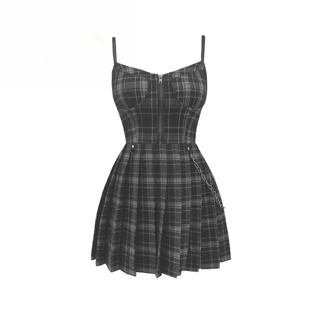 Gothic Grunge Spaghetti Strap Plaid Mini Dress (Available in 2 colors)