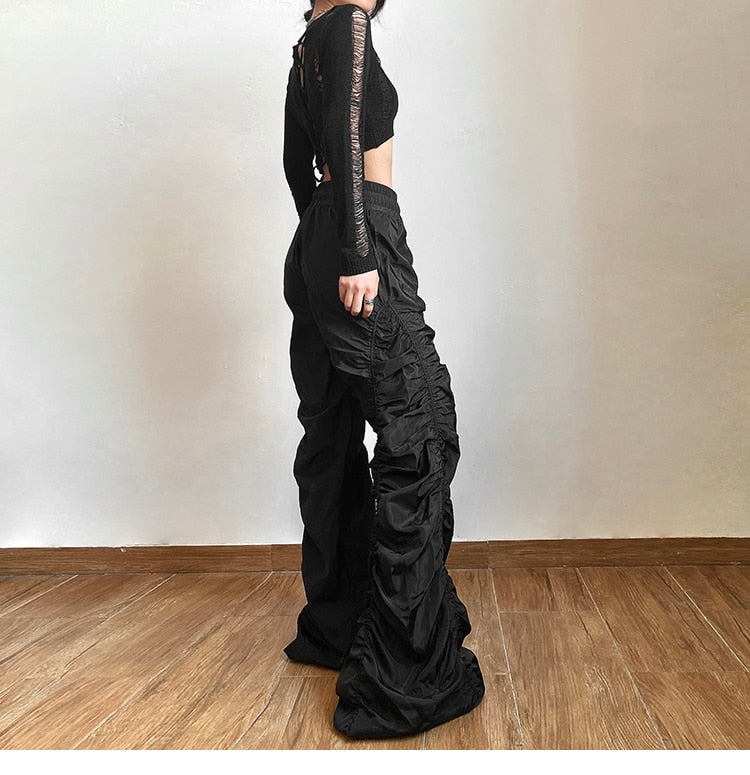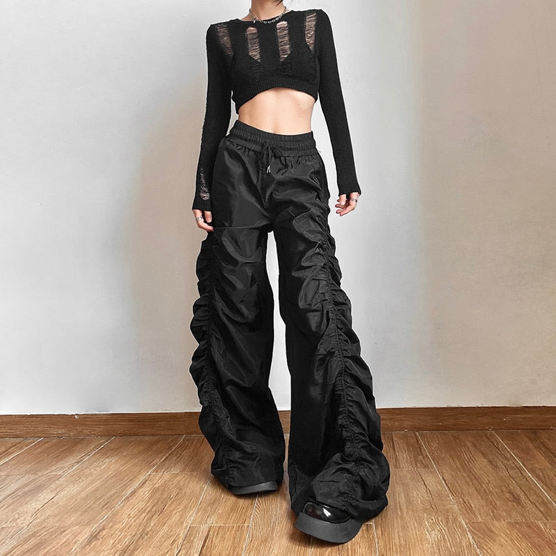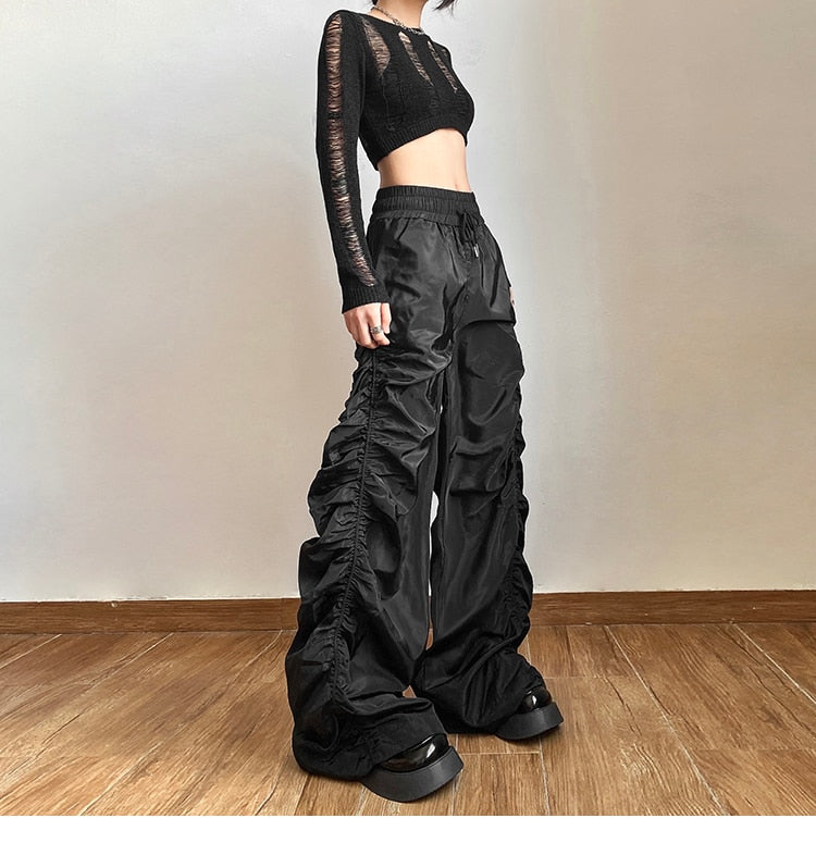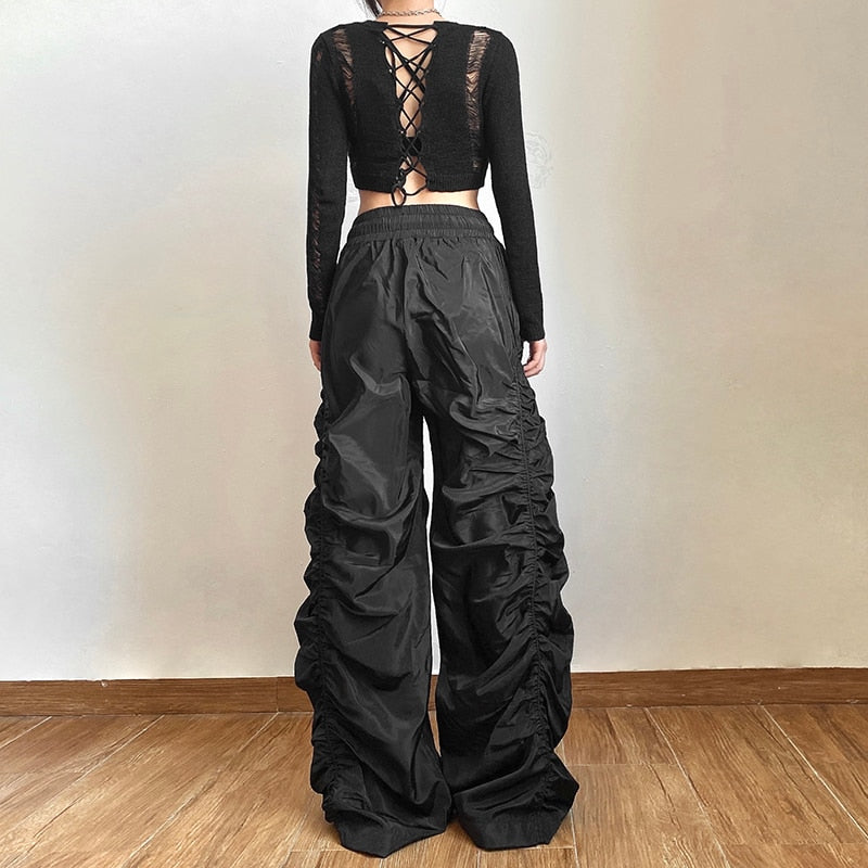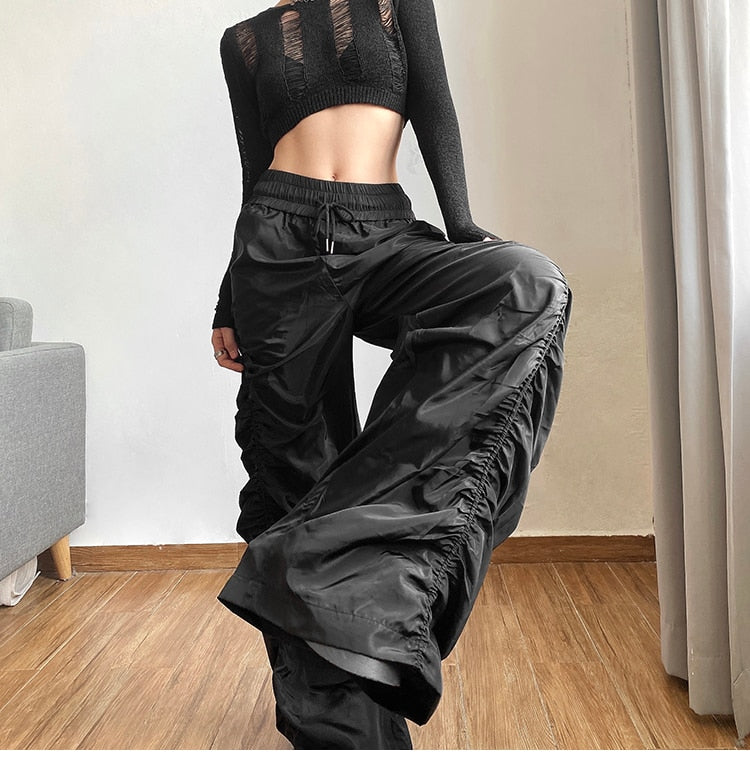Gothic Grunge Wide Leg Ruched Drawstring Pants