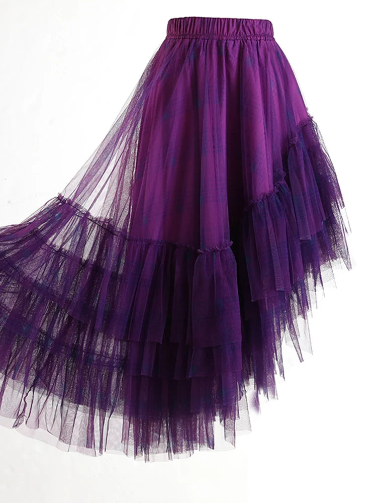 Gothic Grunge Y2K Alt Goth Plaid Mesh Irregular Skirt (available in 4 colors)