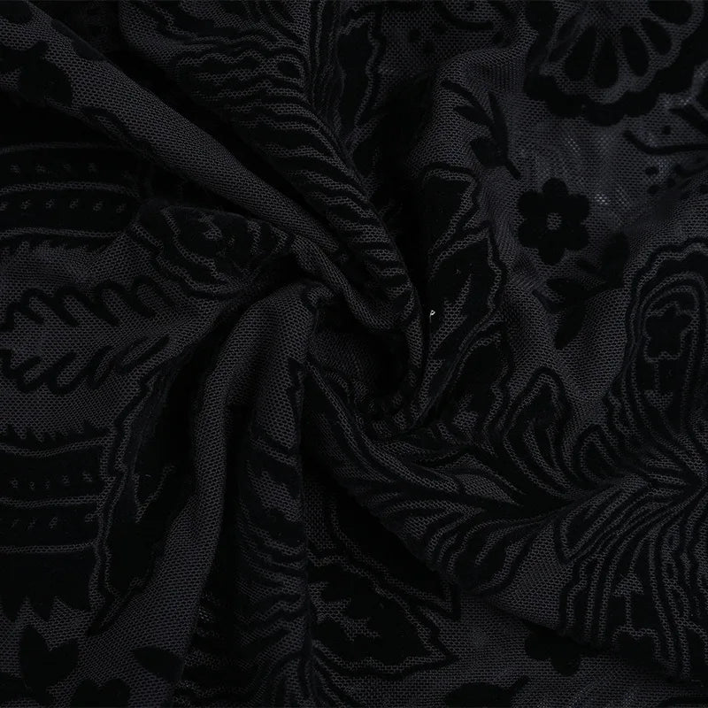 Gothic Romantic Goth Flocking Lace Batwing Sleeve Hooded Long Dress