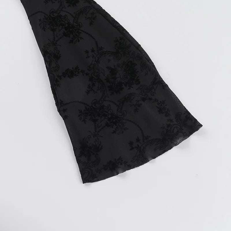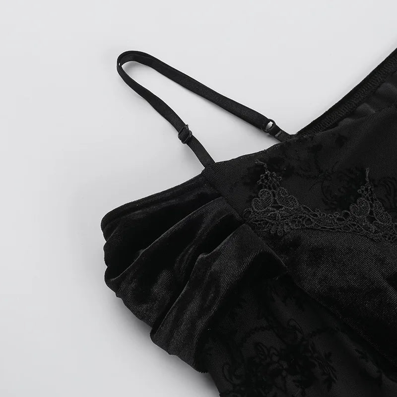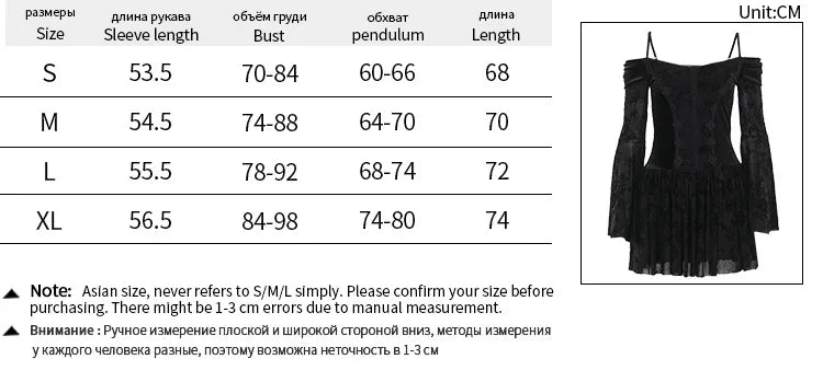 Gothic Vampire Goth Off Shoulder Velvet Sheer Flare Sleeves Mini Dress
